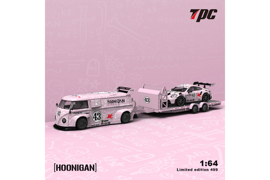 TPC 1/64 RWB VW T1 Van and Porsche 992 GT3 RS Trailer Set in Pink "Hoon" Livery
