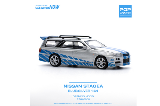 Pop Race 1/64 Nissan Stagea GT-R (R34) Wagon in Blue/Silver