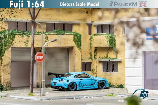 Fuji 1/64 Nissan GT-R (R35) Rocket Bunny Widebody in Light Tron Baby Blue (Dirty)
