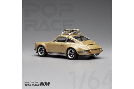 Pop Race 1/64 Singer Porsche 911 (964) in Gold with Roof Rack and Luggage