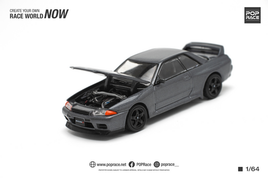 Pop Race 1/64 Nissan Skyline GT-R (R32) in Gun Grey Metallic