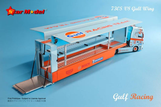 Star Model 1/64 Scania V8 730S Double Decker Gullwing Transporter Loader in Gulf Livery