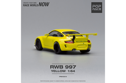 Pop Race 1/64 Porsche 911 RWB997 in Yellow