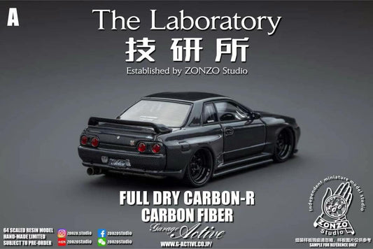 The Laboratory Established by ZONZO Studio 1/64 Nissan Skyline GT-R (R32) Garage Active Widebody - SEMA Version In Full Black Carbon