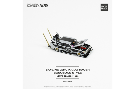 Pop Race 1/64 Nissan Skyline (C210) Bosozoku Style in Matte Black/Silver
