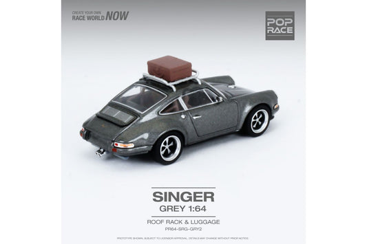 Pop Race 1/64 Singer Porsche 911 (964) in Gray with Roof Rack and Luggage