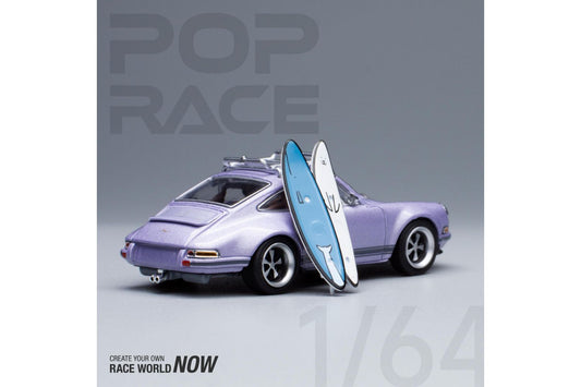 Pop Race 1/64 Singer Porsche 911 (964) in Purple with Roof Rack and Surf Boards