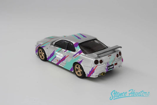 Stance Hunters x ArtWork 1/64 Nissan Skyline GT-R (R34) Nismo Z-Tune in Silver HKS Livery