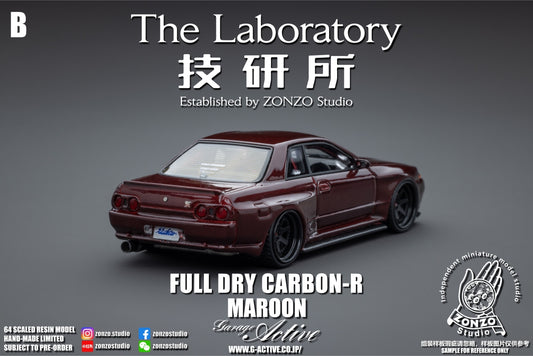 The Laboratory Established by ZONZO Studio 1/64 Nissan Skyline GT-R (R32) Garage Active Widebody - SEMA Version In Full Maroon Carbon