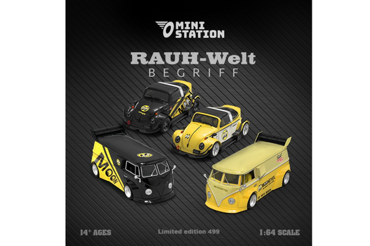 Mini Station 1/64 RWB VW T1 Van and RWB VW Beetle Targa Trailer Set in Mooneyes Livery