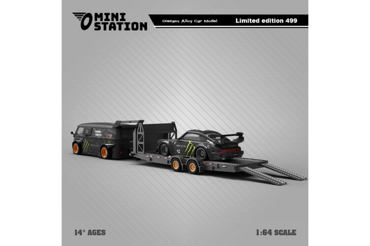 Mini Station 1/64 RWB VW T1 Van and Porsche 911 RWB964 Trailer Set in Monster Livery