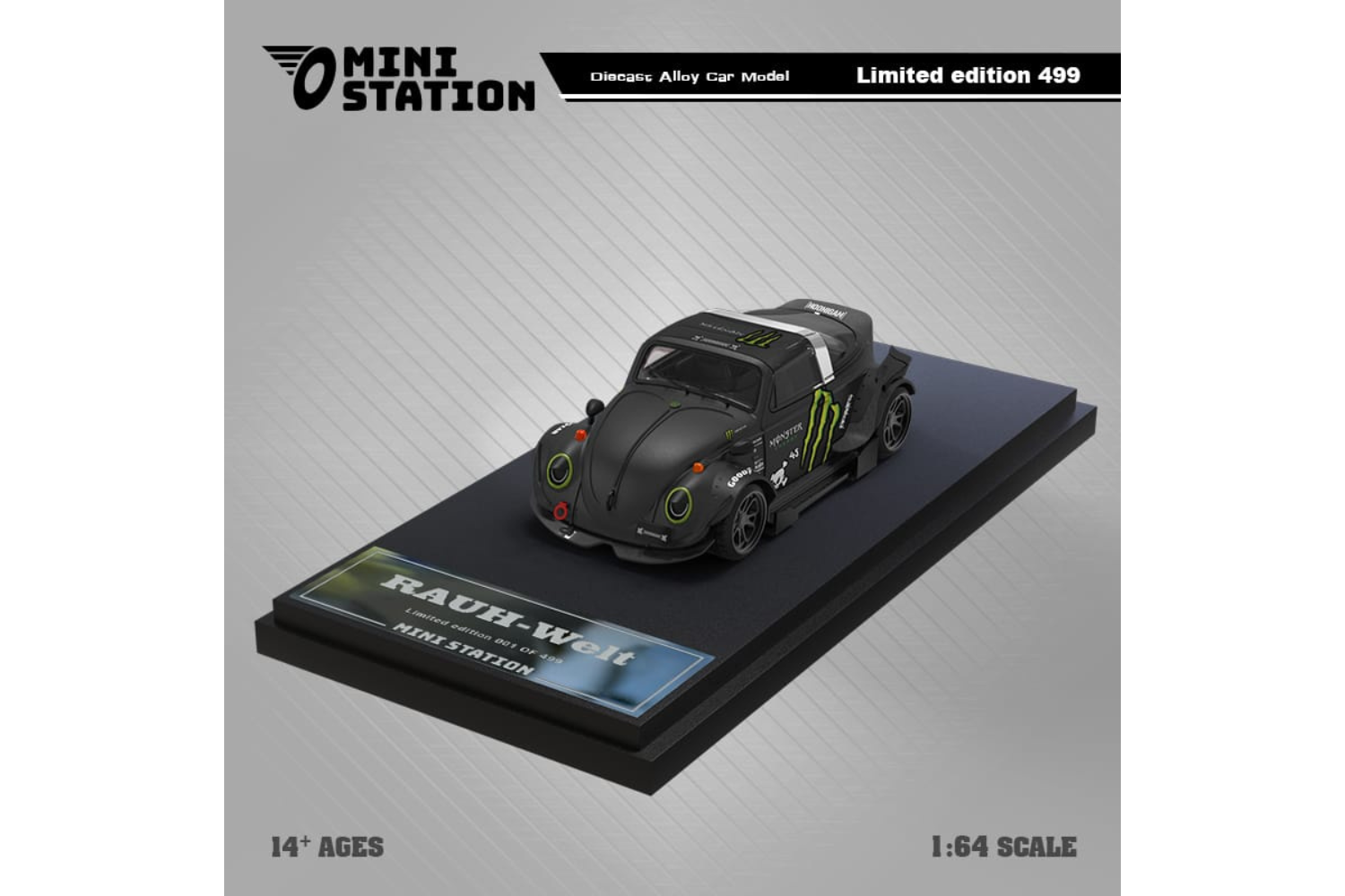 Mini Station 1/64 RWB VW T1 Van and RWB VW Beetle Targa Trailer Set in Monster Livery