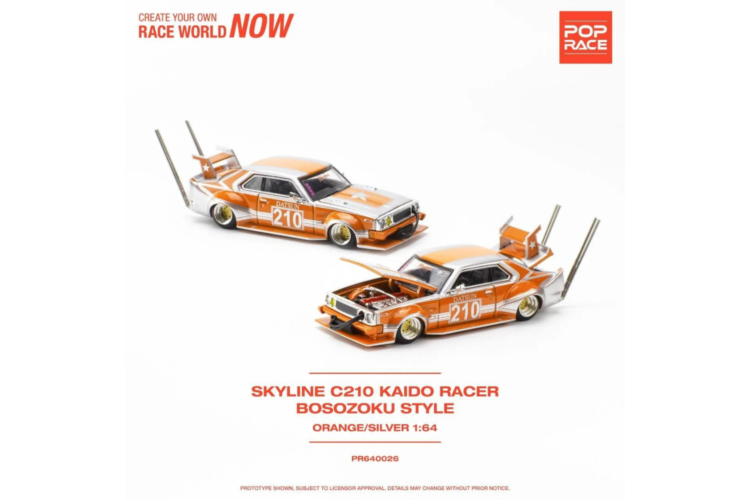Pop Race 1/64 Nissan Skyline (C210) Bosozoku Style in Orange/Silver