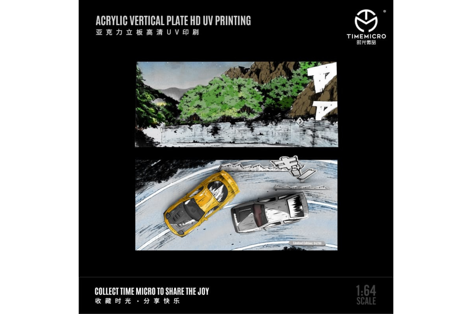 Time Micro 1/64 Initial D Series Toyota Sprinter Trueno (AE86) White Hood Takumi Fujiwara Vs Mazda RX-7 FD3S Takahashi Keisuke "Anime Look"